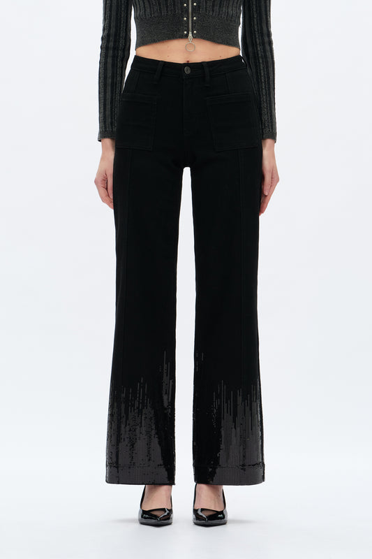 MID RISE SEQUIN WIDE LEG