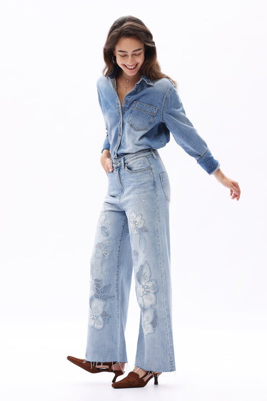 HIGH RISE WIDE LEG BYW8290 SKY FADE