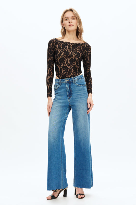 PLUS EMILY HIGH RISE DISTRESSED FLARE