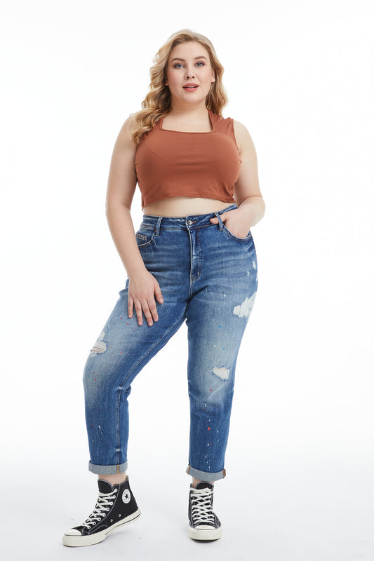 PLUS HIGH RISE PAINTED MOM