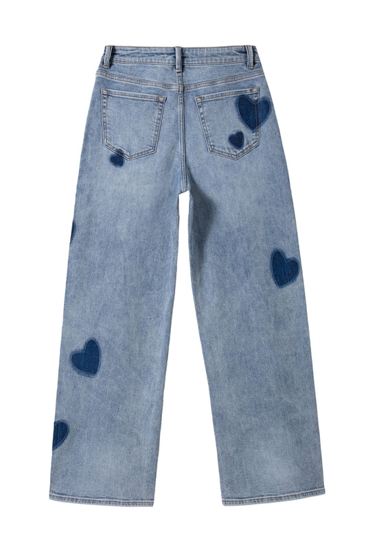 HIGH RISE EMBROIDERED WIDE LEG BYW8301 LIGHT BLUE