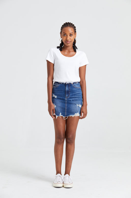 PRE-ORDDISTRESSED RISELESS SKIRT