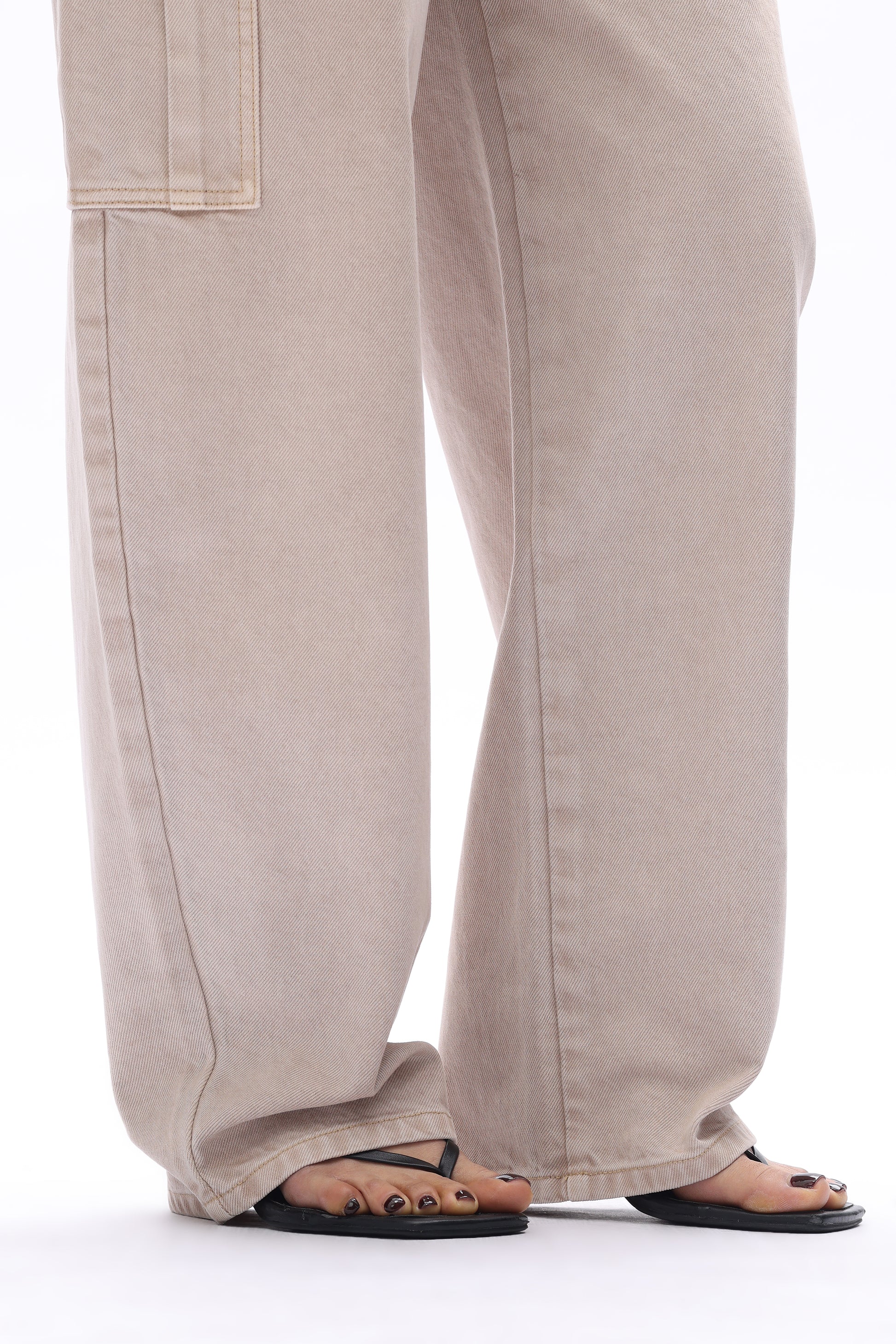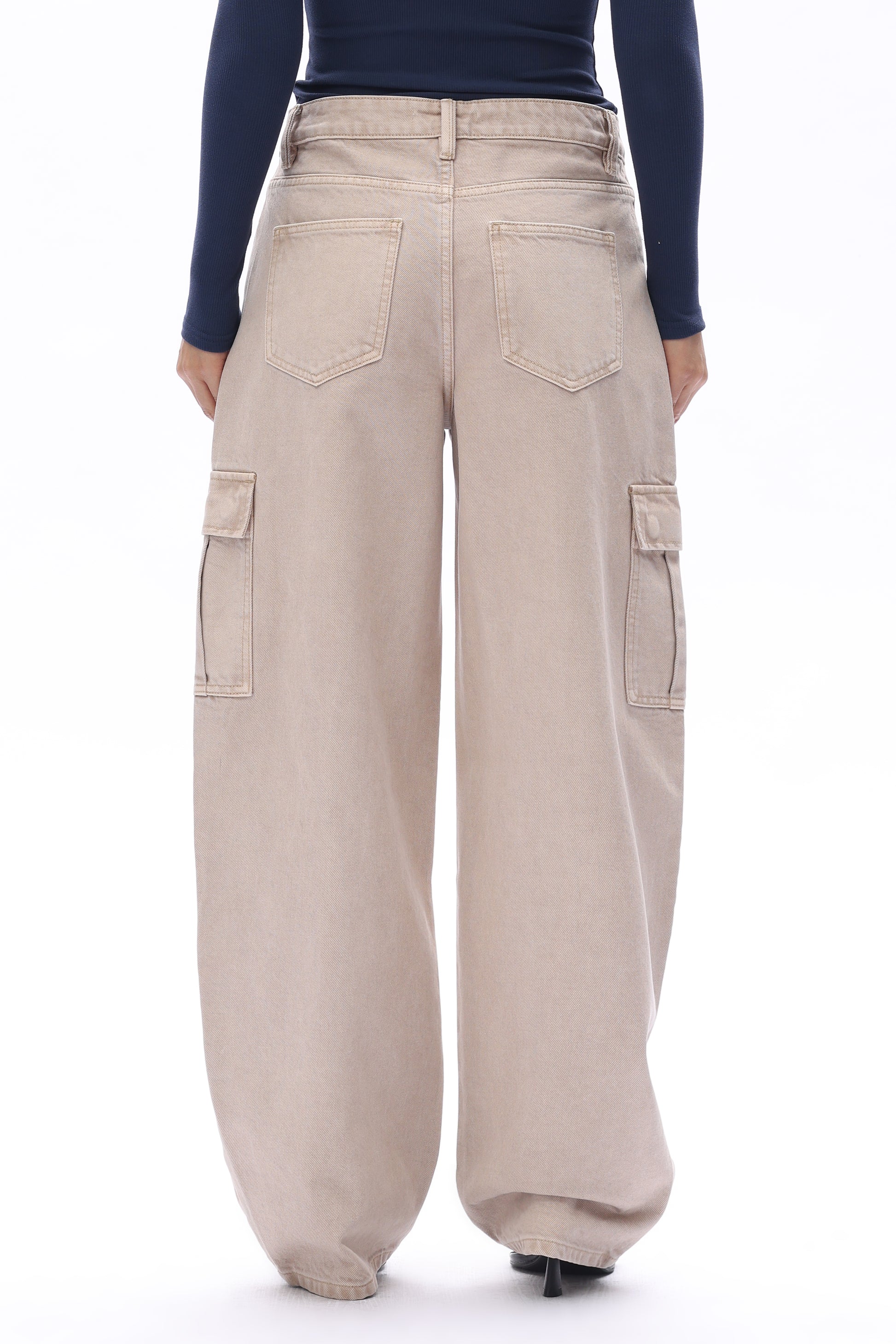 Low rise barrel jeans in a garment-dyed finish, featuring multi-functional pockets and a relaxed silhouette, allowing the wearer to choose from a variety of colors.
