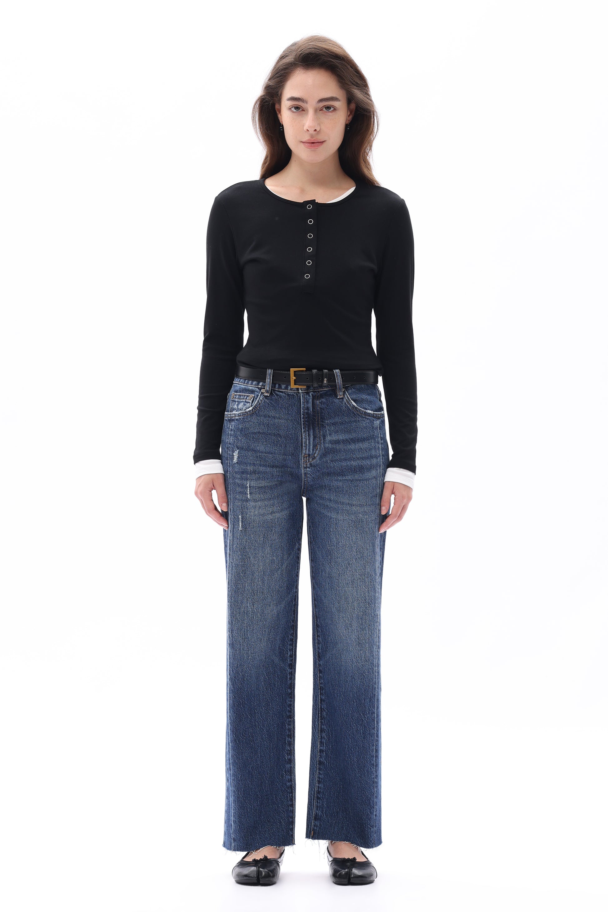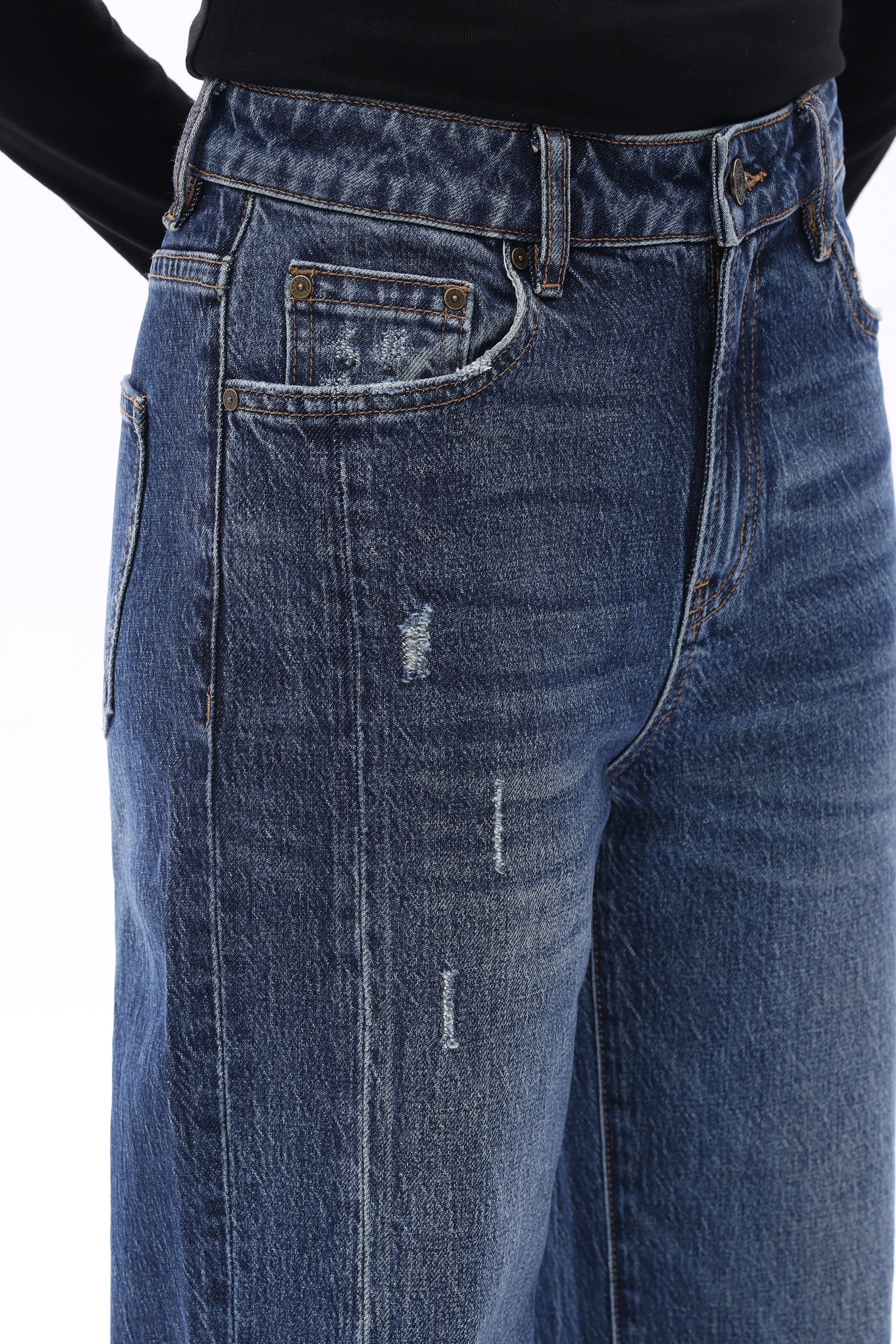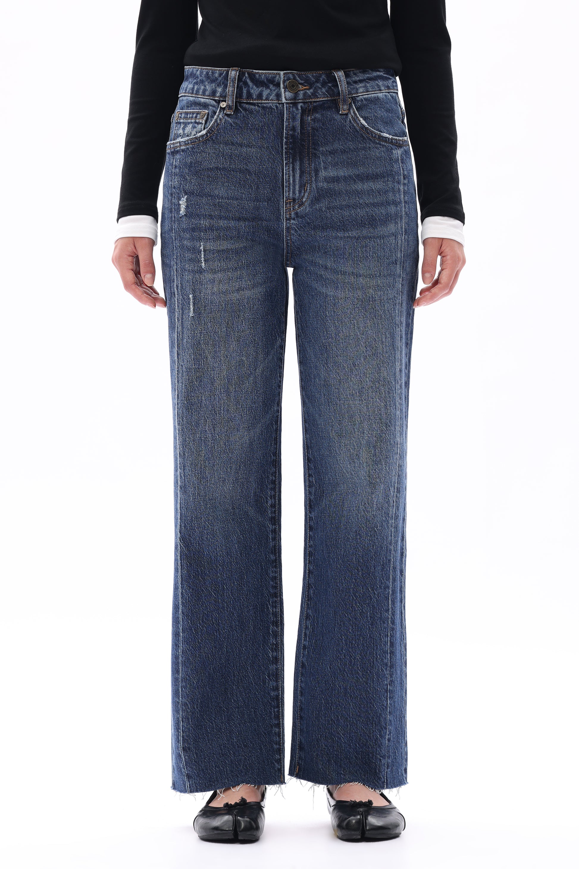 HIGH RISE RELAXED STRAIGHT-LEG PANTS WITH A DISTRESSED FINISH FOR A VINTAGE LOOK, CLASSIC FIVE-POCKET DESIGN, SUITABLE FOR MOST BODY TYPES.