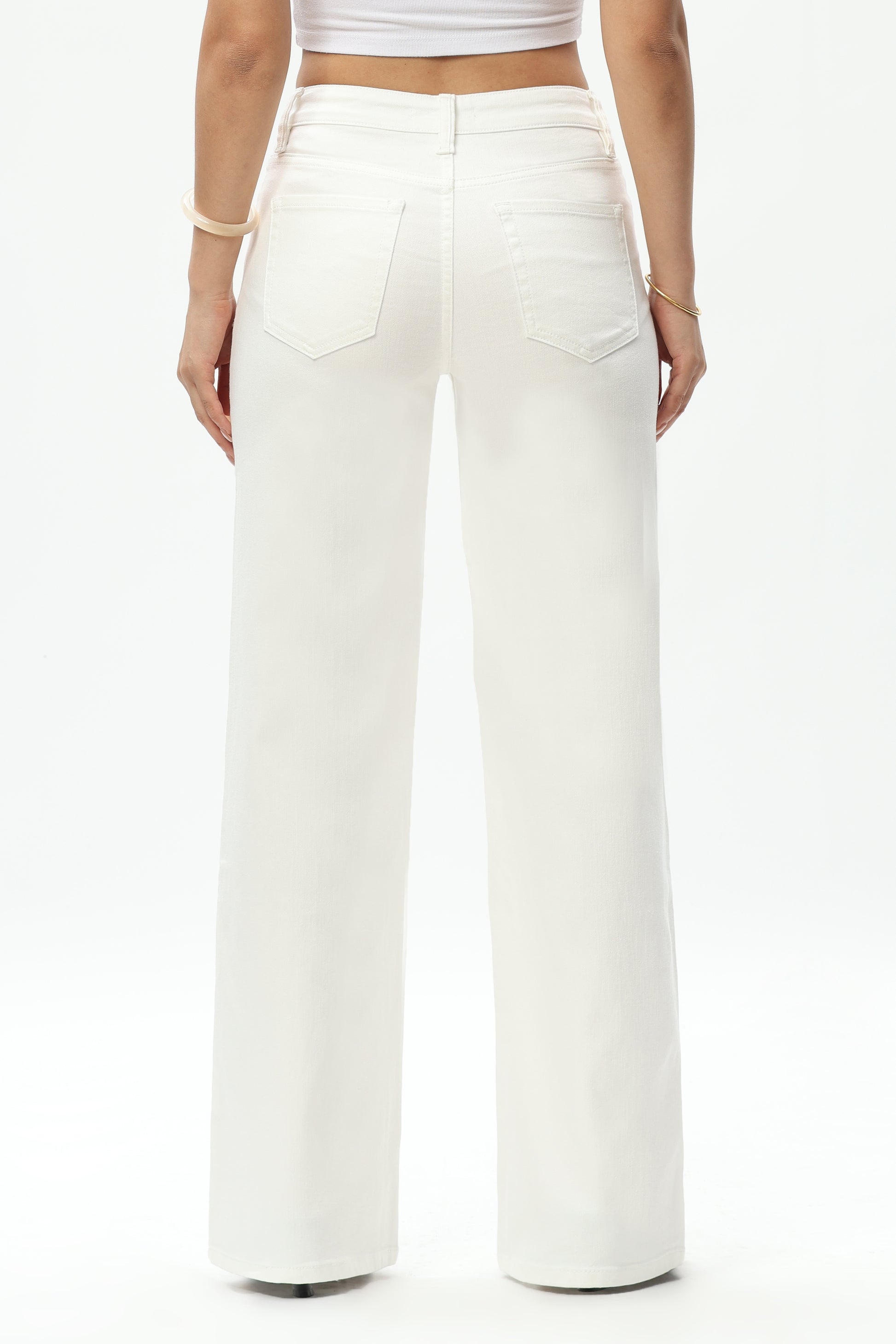 Mid rise relaxed straight pants, classic loose straight-cut silhouette, crafted from special stretch fabric with stain-resistant properties to maintain cleanliness, suitable for various occasions