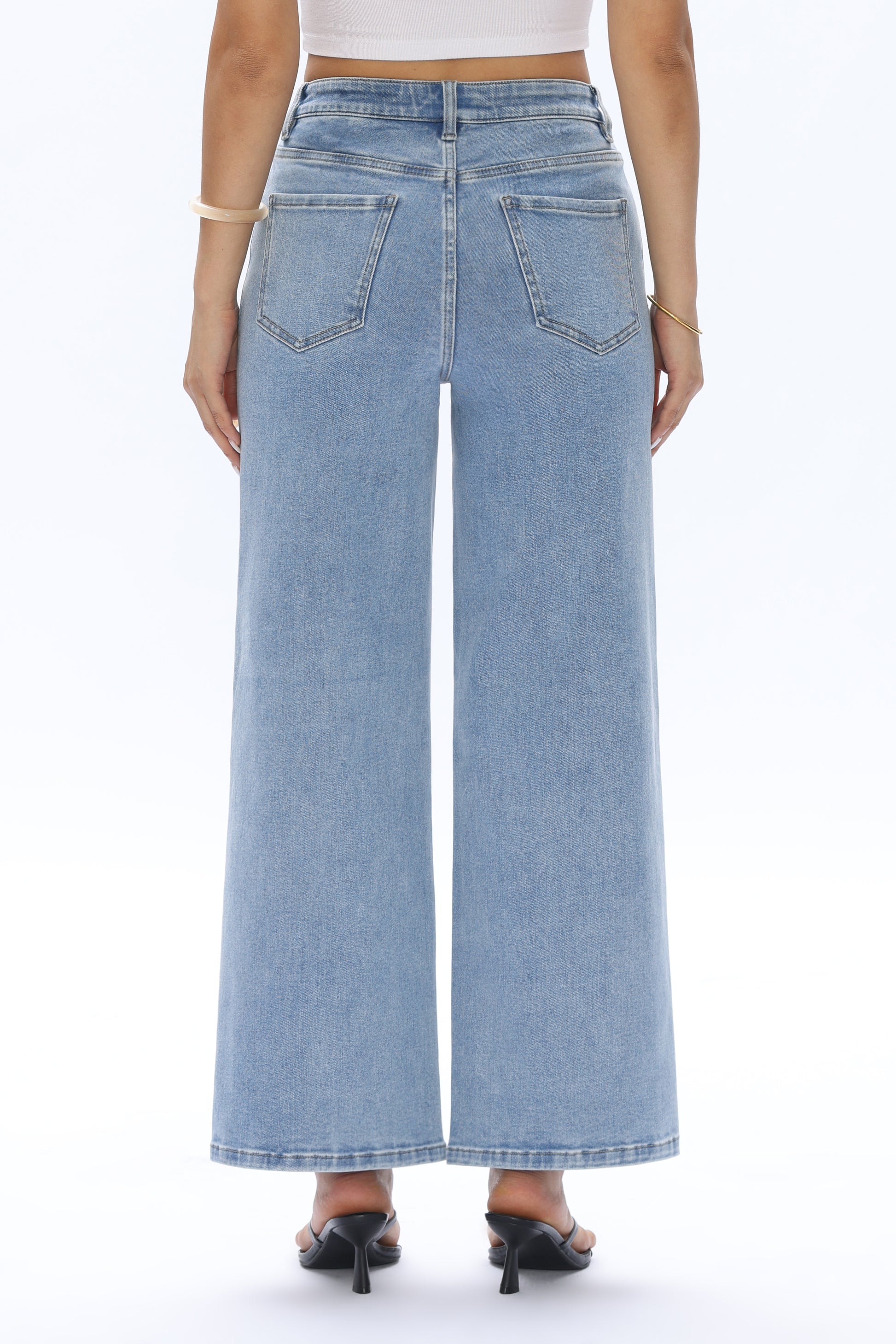 Paris high rise straight leg jeans featuring multiple openwork embroidery details and pearl embellishments.