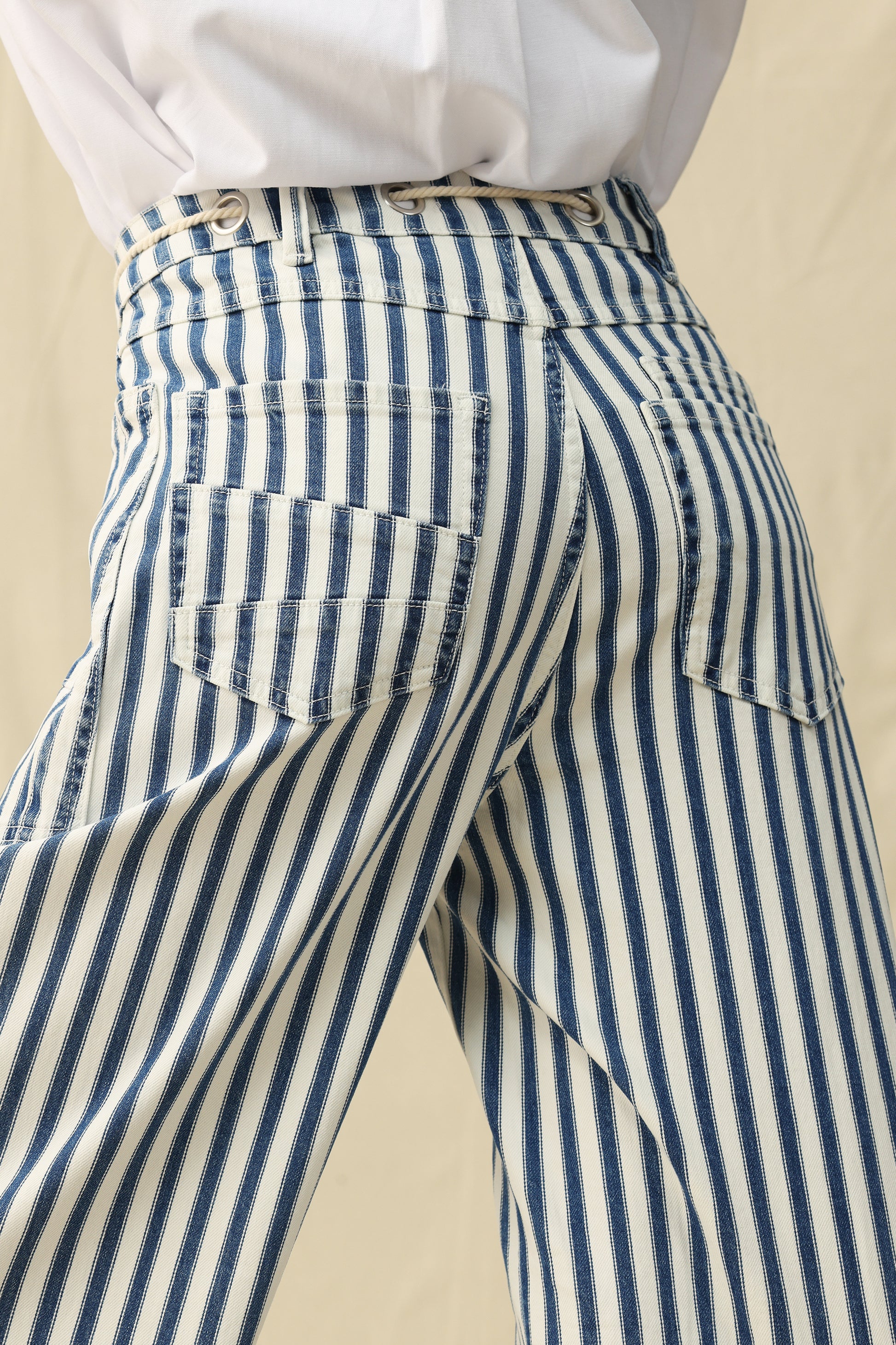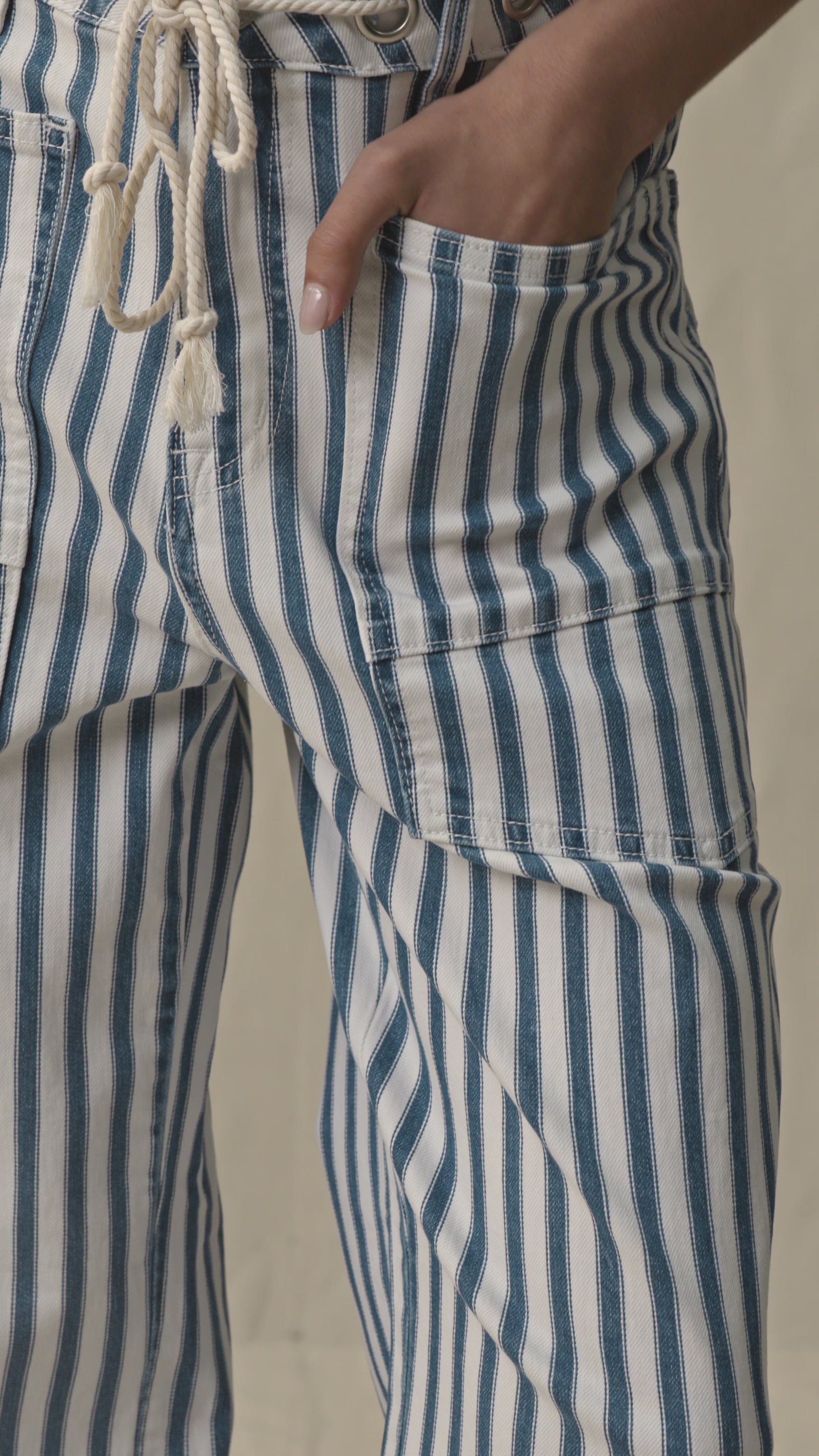 High rise wide leg pants with irregular pocket design, drawstring waistband, available in multiple colors.