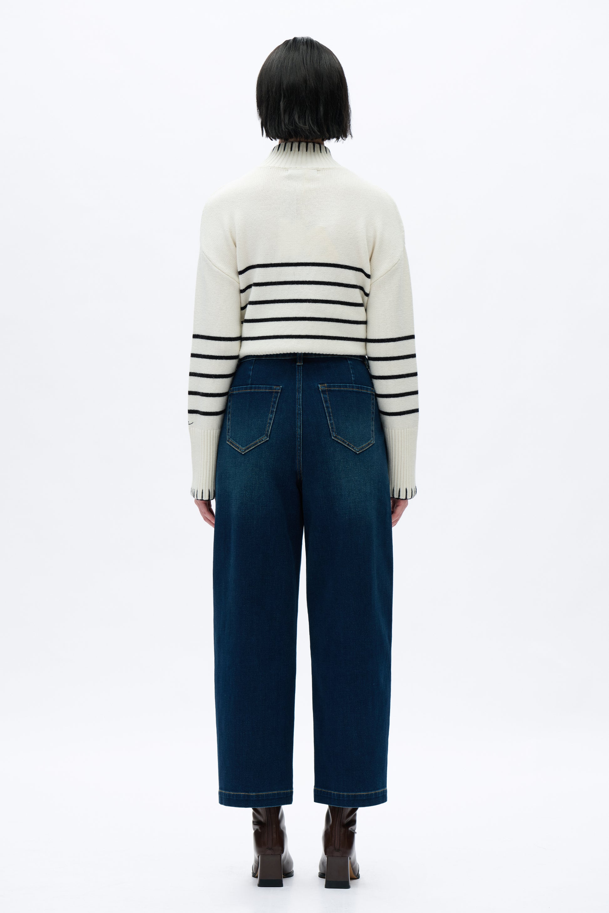 ultra high rise harem jeans, zipper closure, side with slant pockets